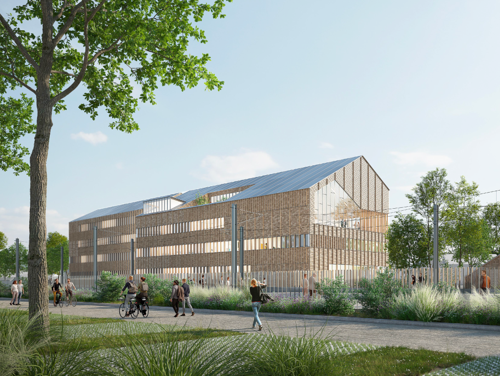 Au-delà des choix techniques en matière d’énergie, l’impact carbone du bâtiment est finement étudié. Les matériaux bio-sourcés sont privilégiés dans la phase de construction et des matériaux de réemploi, issus de la déconstruction du site seront également utilisés.