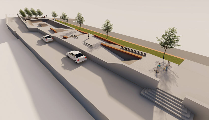 Dans la continuité de la requalification du quartier de la Gare, un skate-park de 888 m² sera aménagé à côté de la Maison commune. Il comprendra trois zones complémentaires :